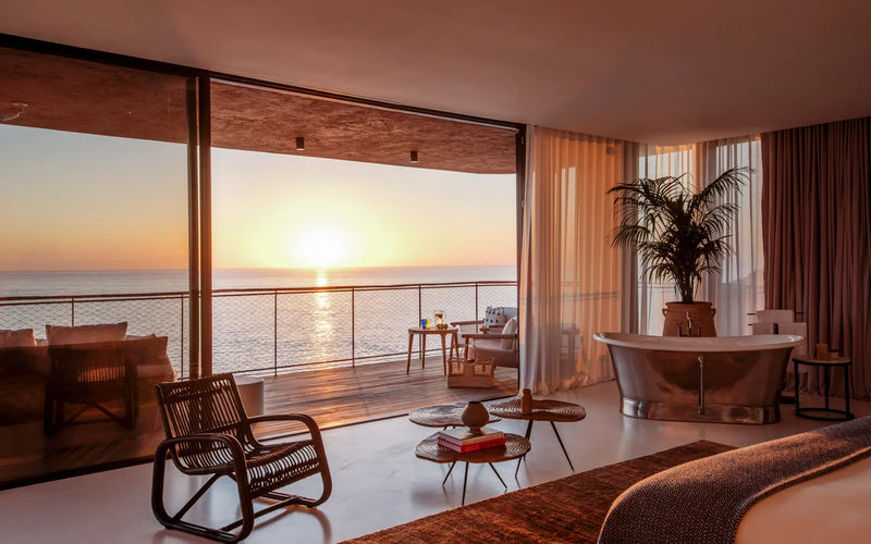 Stay in charming, rustic-luxe villas with panoramic views of the Mediterranean, infinity pools, and airy, bohemian-inspired interiors. Guests can enjoy the property’s multiple pools, lush gardens, and shaded terraces perfect for mindful moments, connection, and sunset gatherings.